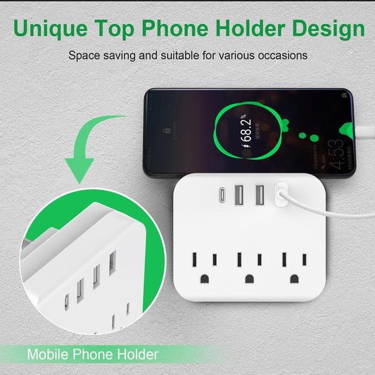 7-In-1 Mini Portable Power Socket with 3 Sockets, 3 USB Ports, 1 Type-C Port